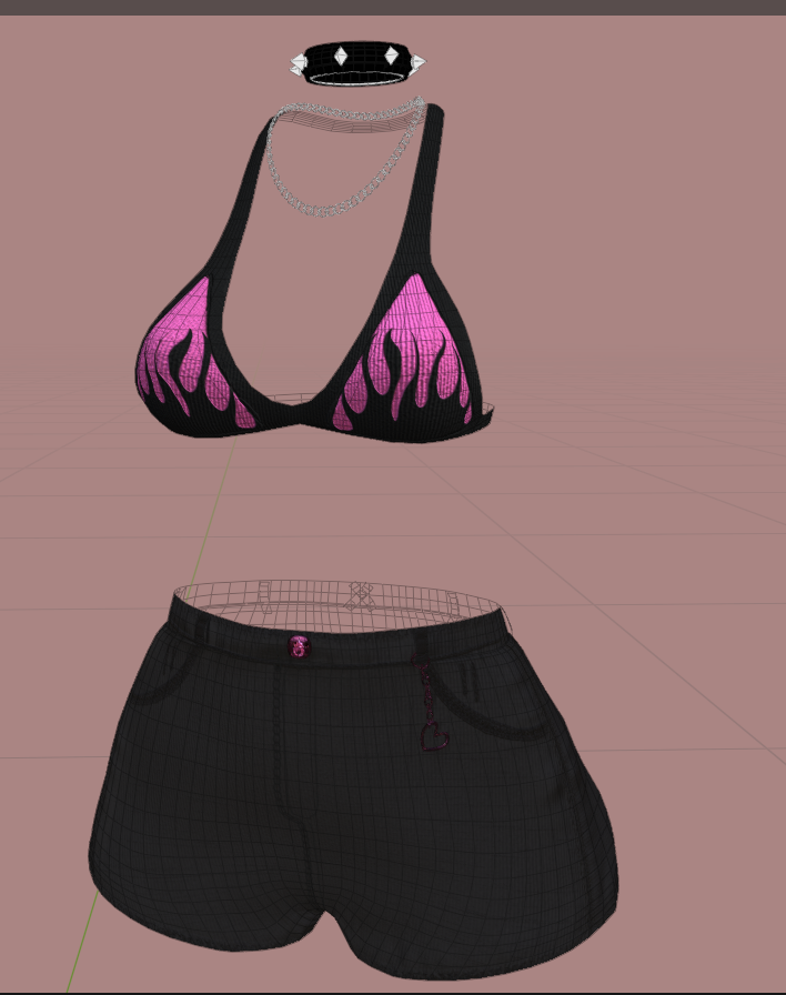 Rigged to Zinpia's Fit base, The Chain on the Shorts wiggles as well!